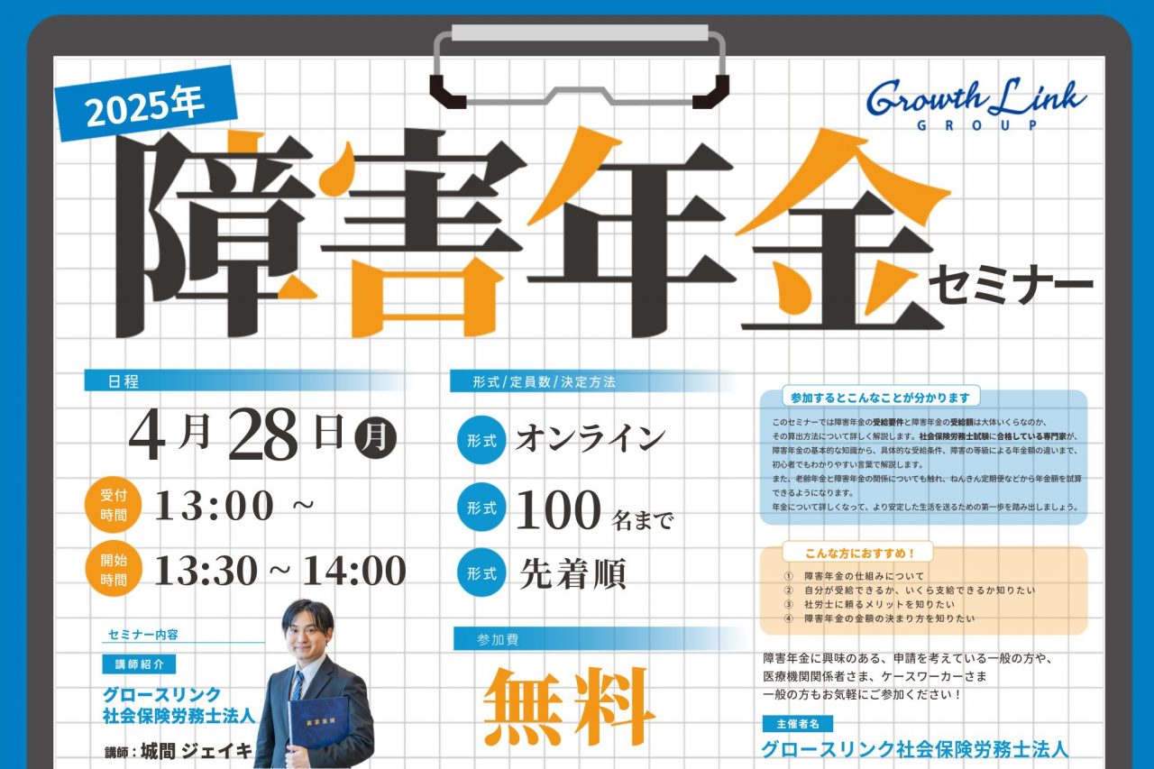 2025年障害年金セミナー/ 障害年金の金額はどう決まる? ~あなたが知っておくべき基準と計算方法~ 2025年4月28日(月)