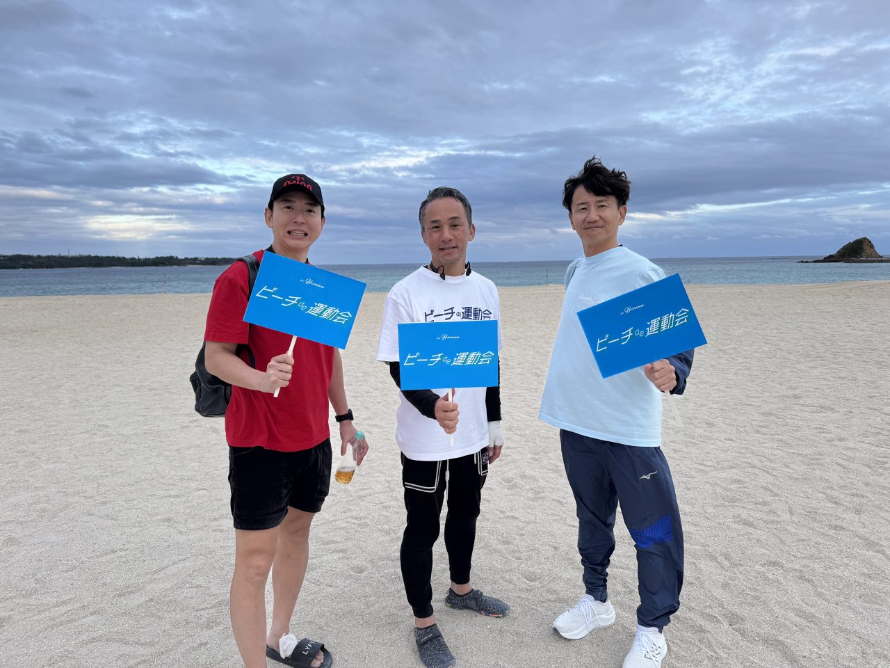 今回の沖縄社員旅行では、那覇空港到着後、KINサンライズビーチ海浜公園で「ビーチde運動会」を開催!🏖️🏐