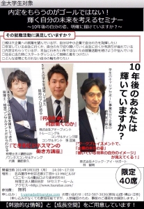 〝輝く自分の未来を考えるセミナー”と題したセミナーで、弊社も学生の皆さんと共に就職活動に向けて