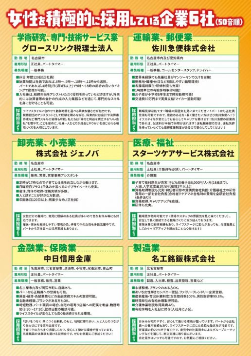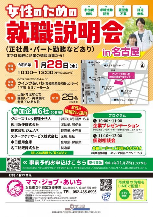 1/28 ウインクあいち「女性のための就職説明会」に参加します