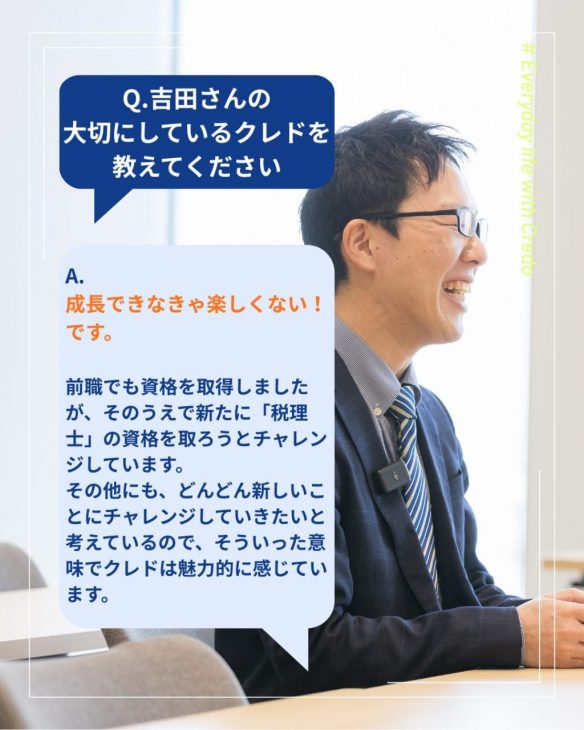今回は、グロースリンク社員の吉田さんが大切にしているクレドをご紹介いたします!