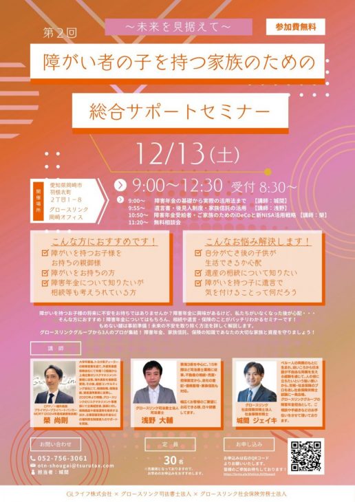 グロースリンクグループから3人のプロが集結! 障害年金、家族信託、保険の知識であなたの大切な家族と資産を守りましょう!