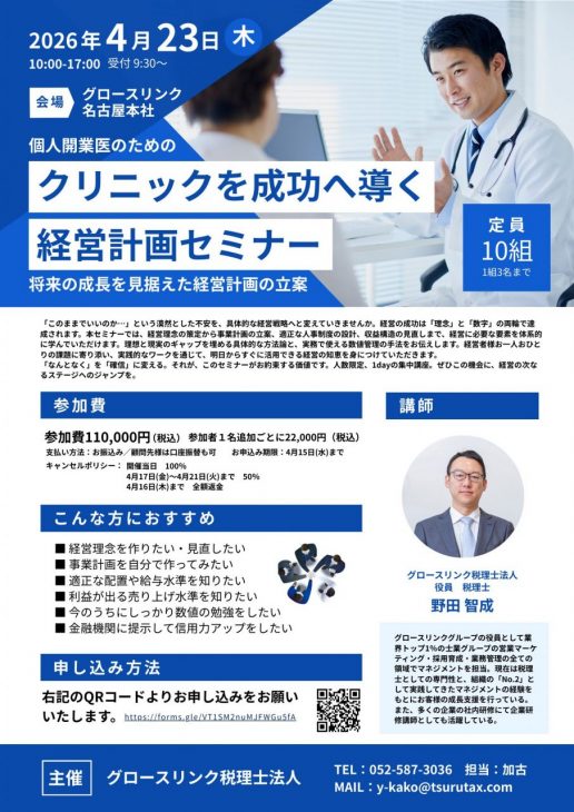個人開業医のためのクリニックを成功へ導く経営計画セミナー